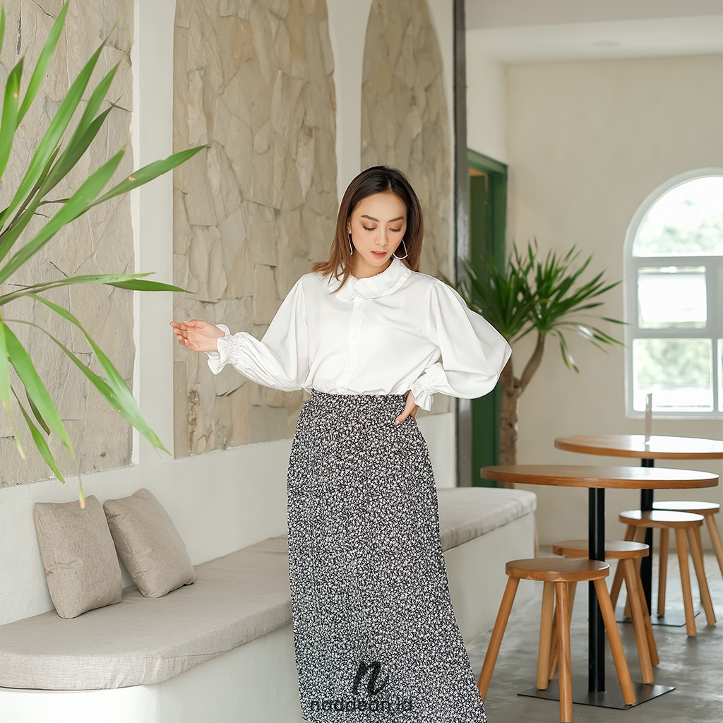 Bahan dan Motif: * Ada furing * Bahan shiffon * Jenis rok bentuk A / Rok bagian bawah lebar