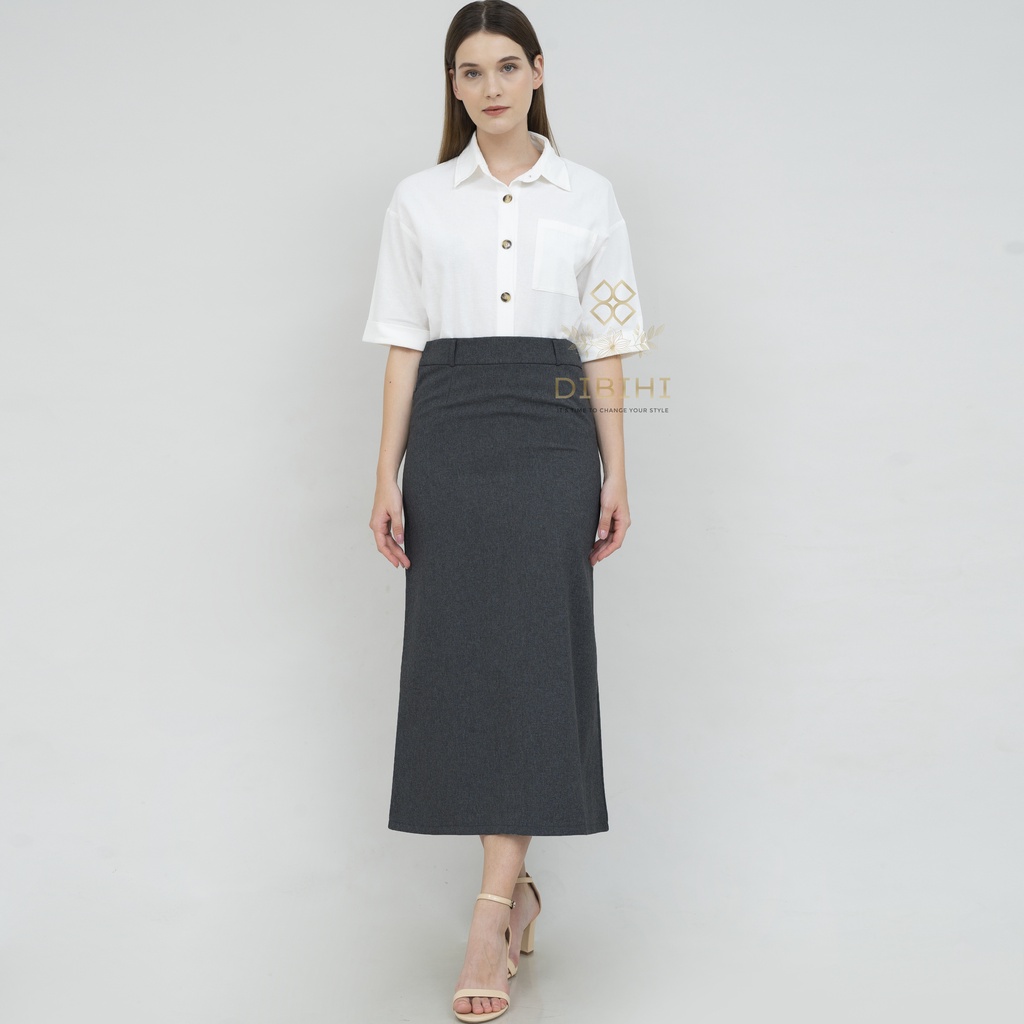 Detail Dibihi Rok Panjang Polos A Line Formal Kerja Kantor Kuliah Bahan Gracella