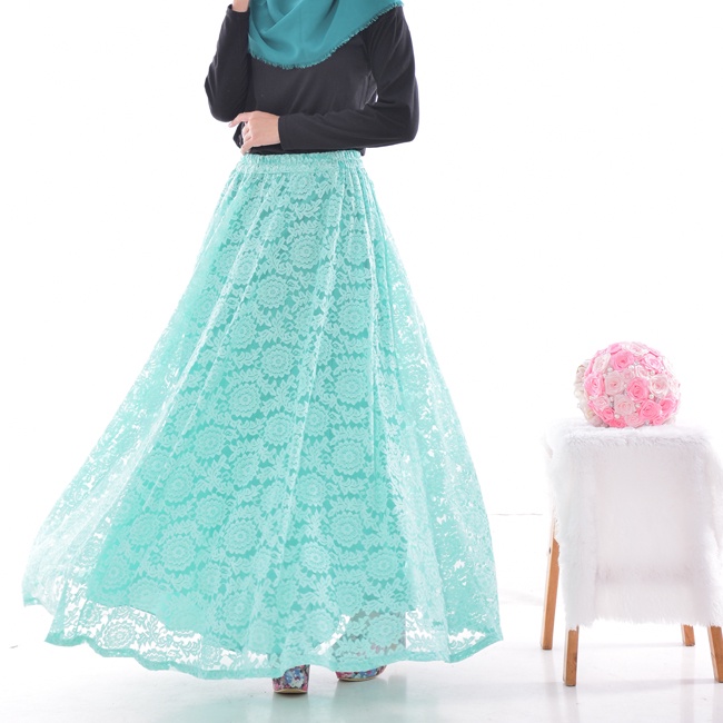 Detail Rok Panjang Wanita Payung Muslimah Pesta Brokat Lace Umbrella Skirt Griyaraditya Almira