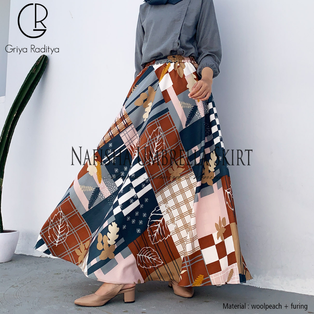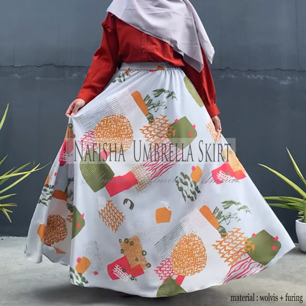 Detail Rok Panjang Wanita Payung Muslimah Nafisha Umbrella Skirt Rok Flare Katun Griyaraditya Almira