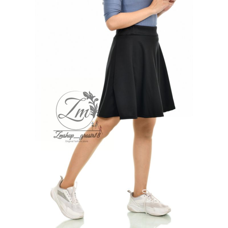 Detail ROK PENDEK POLOS MIDI FLARE SKIRT / ROK PENDEK BAHAN SCUBA