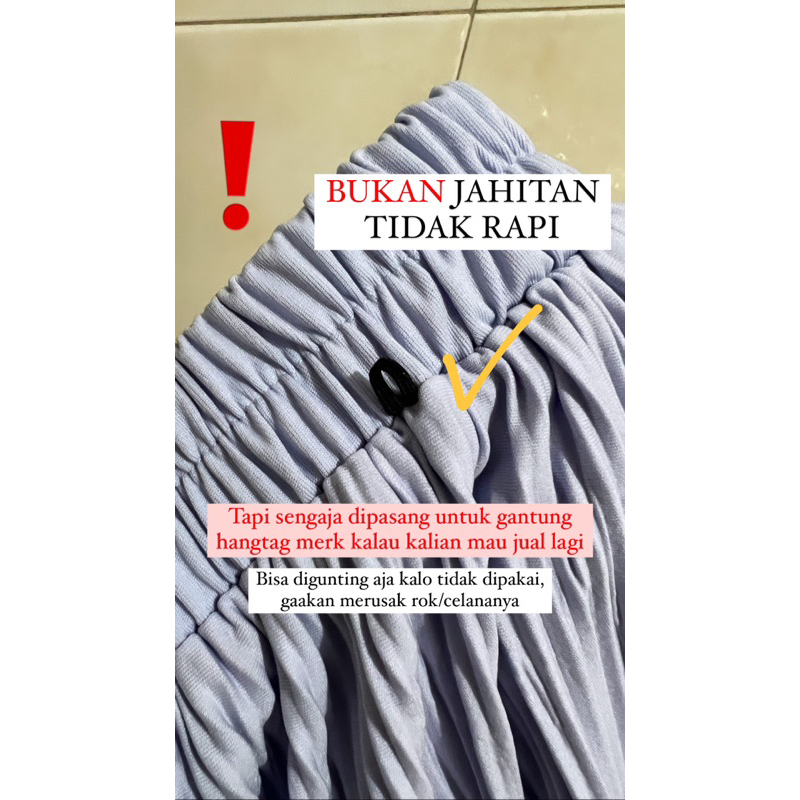 Plisket tegas dan tidak melintir Bukan barang abal-abal warna putih dah broken white ada menerawang, disarankan pakai dalaman warna senada ❗️TERDAPAT KARET KECIL WARNA HITAM/PUTIH DIDEKAT PINGGANG BUKAN CACAT PRODUKSI, MELAINKAN SENGAJA DIPASANG UNTUK GANTUNG MERK UNTUK DIJUAL KEMBALI. Silahkan digunting kalau memang tidak perlu, tidak akan merusak rok nya❗️