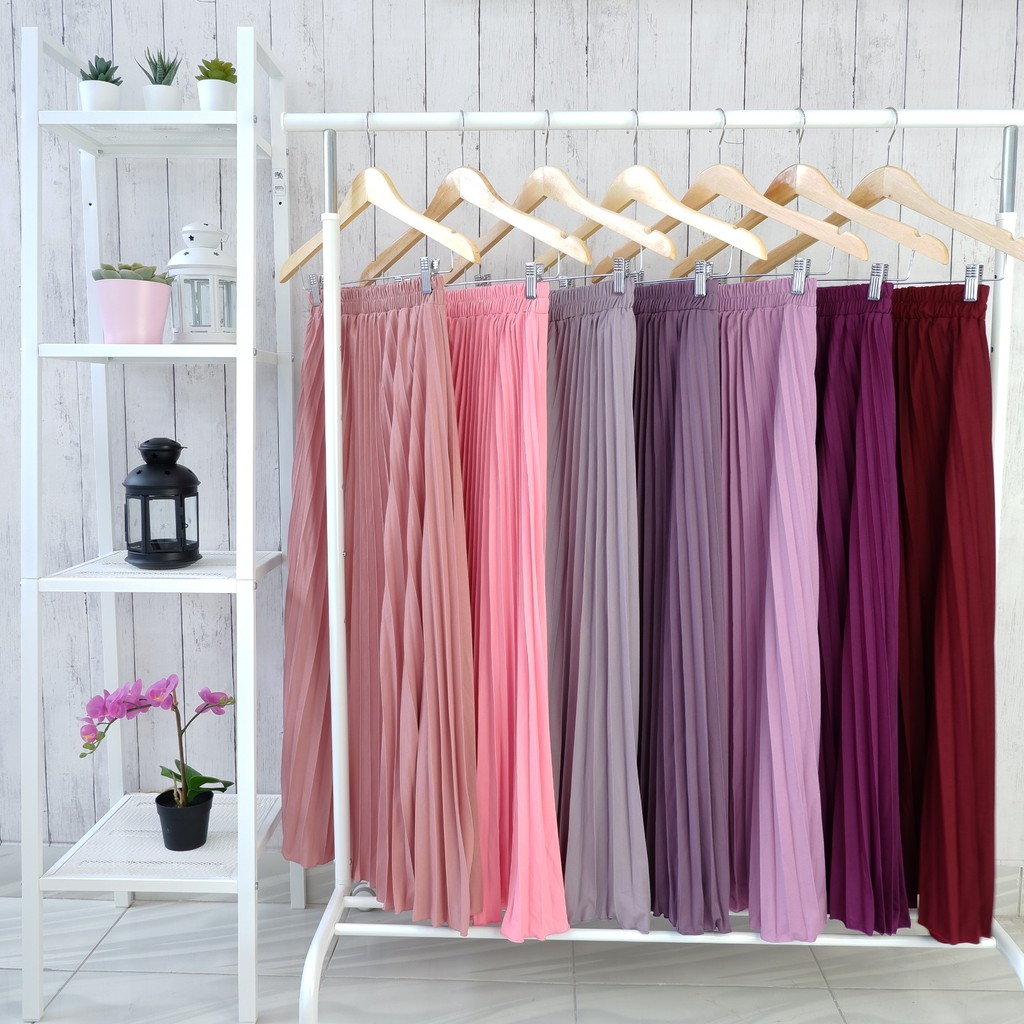 Detail ROK PLISKET PANJANG (256.C) LUVALINE ROK PLISKET MURAH PLEATED SKIRT FLARE SKIRT MAYUNG FLOWY REMPEL