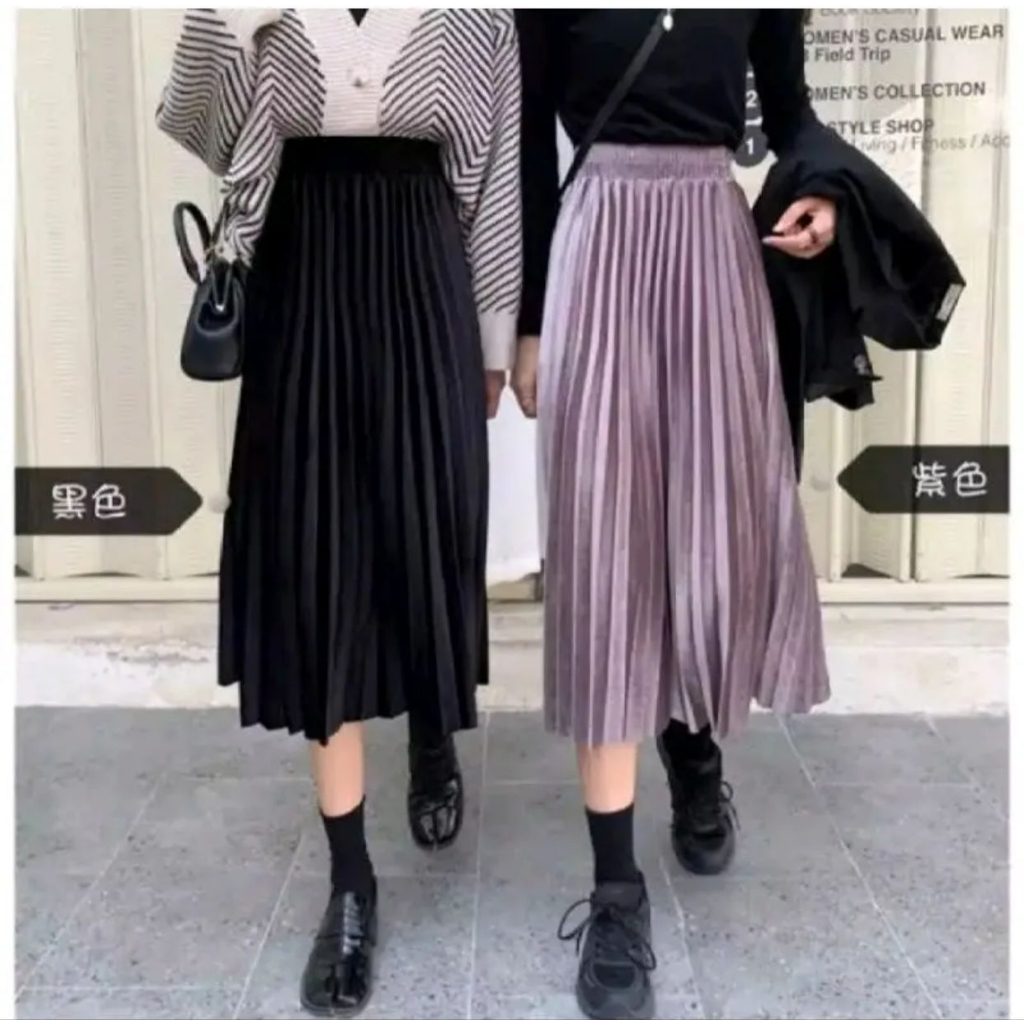 Pakaian Wanita > Rok > Maxi Skirt > ROK PLISKET PREMIUM BLUDRU VELVET 7/8 /ROK PLISKET JUMBO