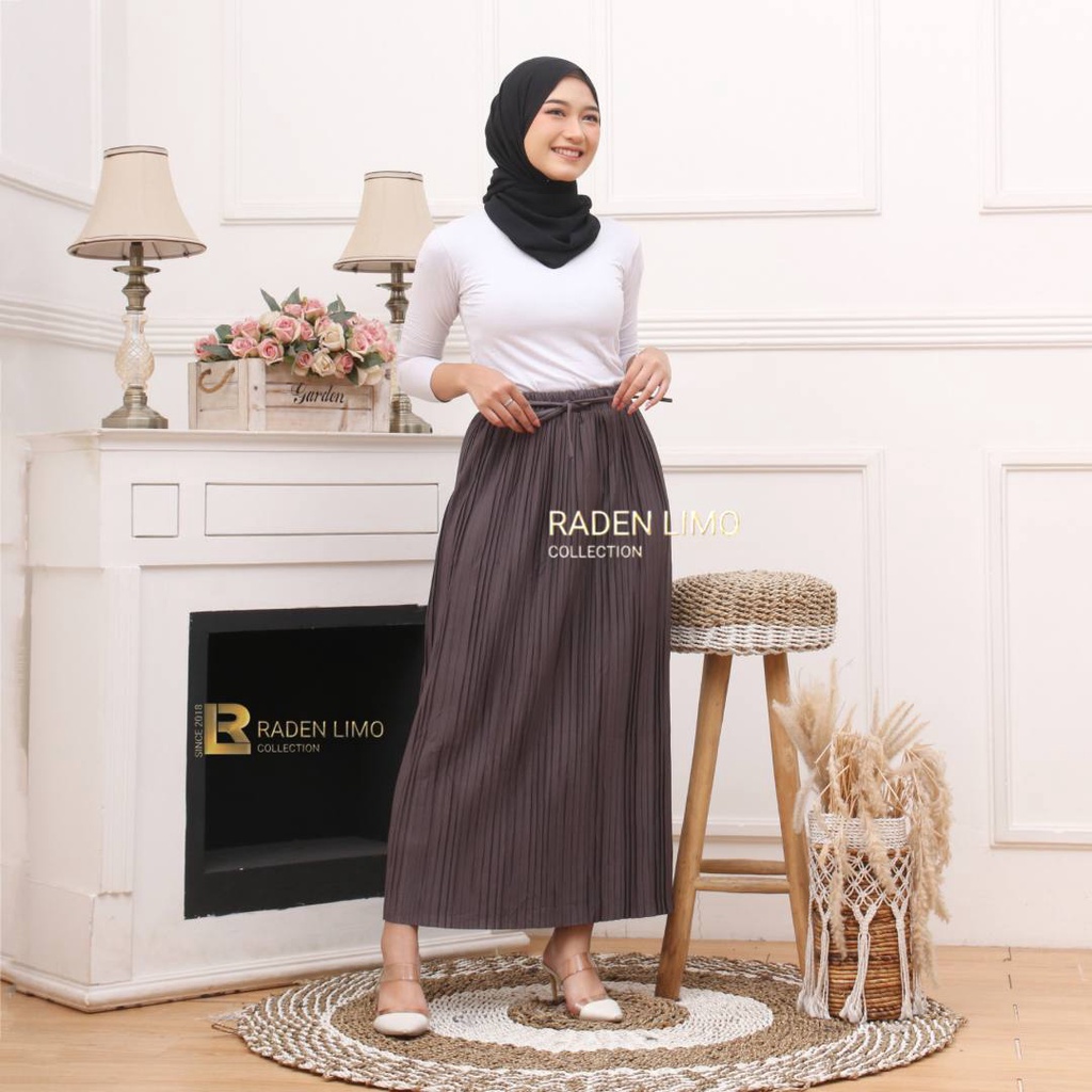 Rok plisket lurus span Rempel kecil Material: moumbloe premium (tebal,tidak menerawang,adem,halus,jatuh,mulur)
