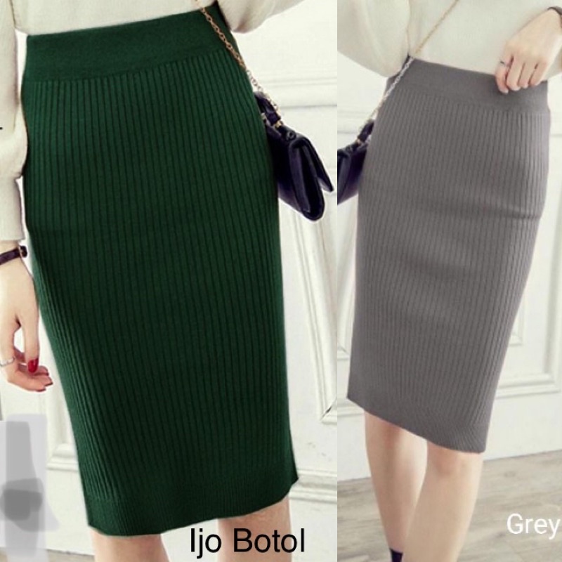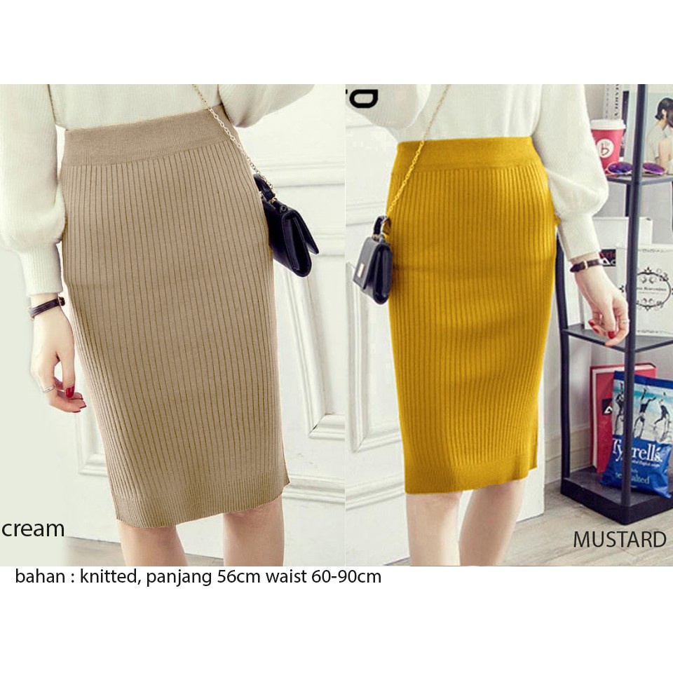 Your browser does not support the video tag.Video perkenalan produk Rok rib rajut pensil (R60). Sumber: Shopee.