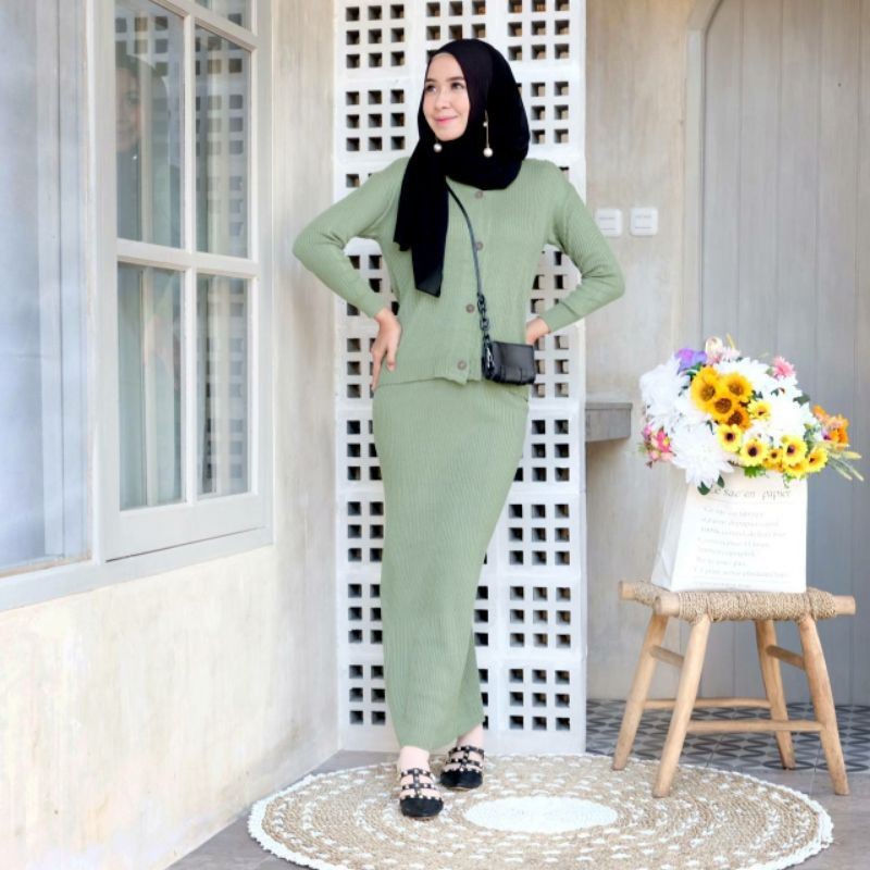 rok/setelan/PANILLA/setelan baju pashionwanita Deskripsi Produk Tampil casual dengan rok & cardigan yang berbahan rajut super premium. Bahan rajutnya lentur. Beli 1 set bisa digunakan untuk beberapa look :)