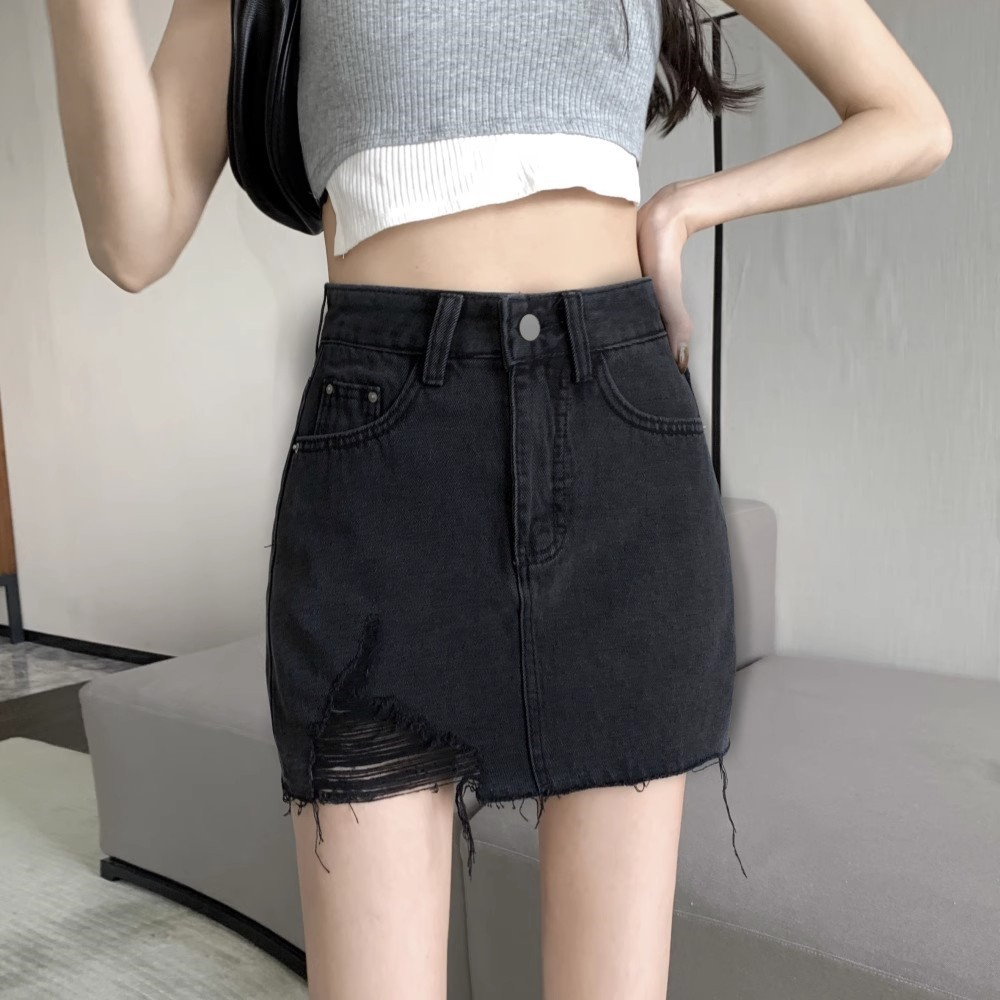 Detail Rok span hitam rok jeans pendek wanita midi skirt korea rok jeans highwaist ripped terbaru 2023