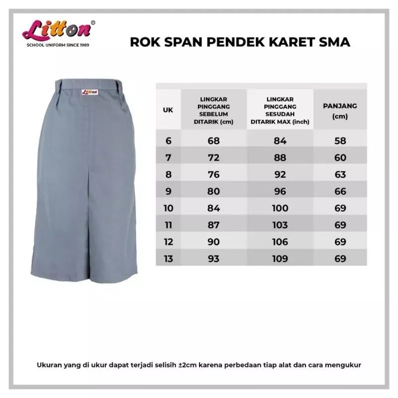 Detail Rok Span Pendek karet SMA abu abu LITTON Famatex Premium / Perlengkapan Seragam Sekolah