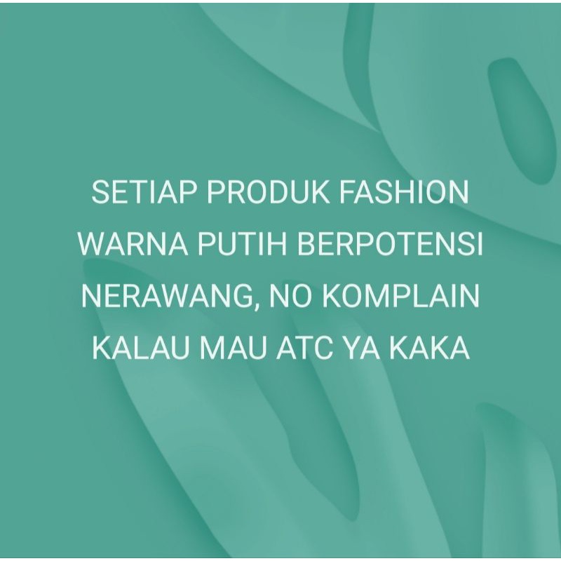 Mohon cek foto asli( geser kanan) , bertanya sampai jelas, membaca deskripsi sampai habis dan teliti sblm order. Dan mohon pilih variasi yg diinginkan,tidak menerima sisipan warna di catatan maupun chat
