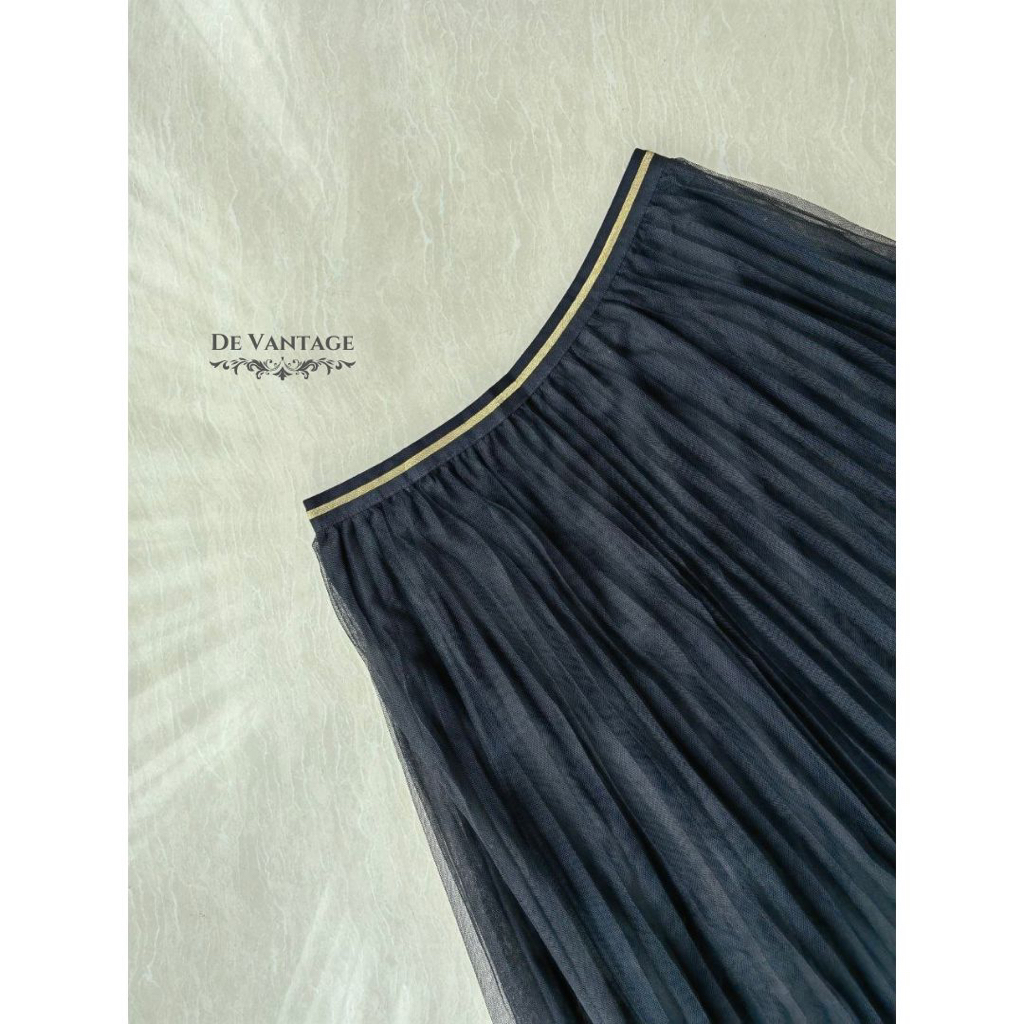 A plain tulle skirt with gold details on the waist. It has 3 layers, and an elastic waistband that stretches up to 44 cm.