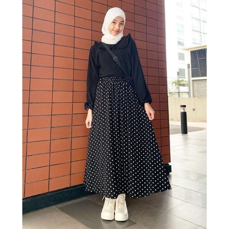 Fashion Muslim > Bawahan Muslim Wanita > Rok > ROK WANITA POLKADOT BAHAN MONALISA LP 72-102 CM PR 102 CM LB 210CM ADA SAKU DI SEBELAH KANAN ROK WANITA PANJANG / ROK WANITA KOREAN STYLE / BAWAHAN WANITA POLKADOT
