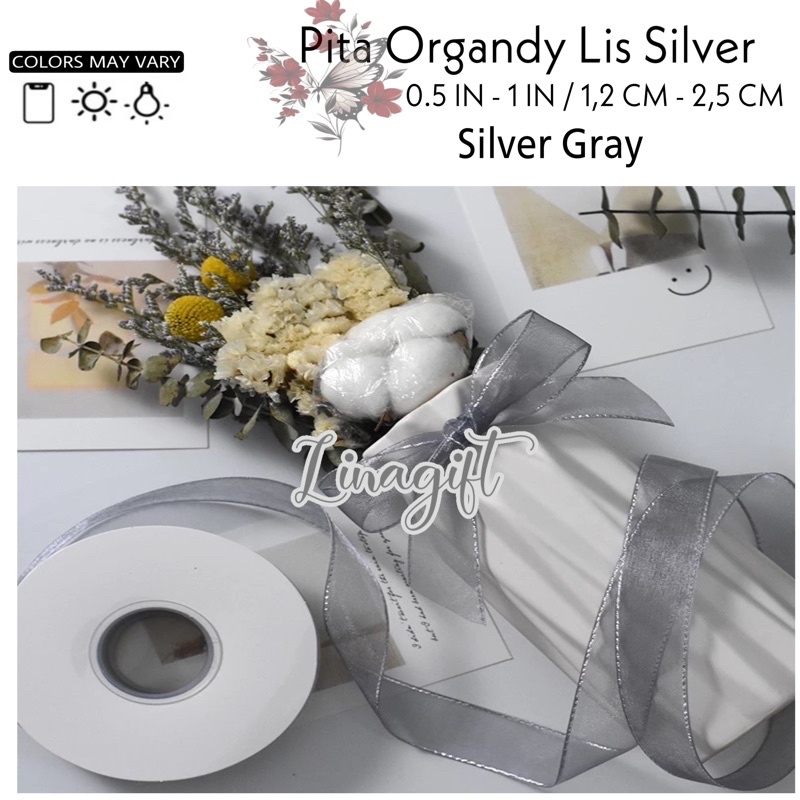 HARAP NOTES WARNA YG DIINGINKAN PITA ORGANDY LIS SILVER UK 1 IN - 2.5 CM