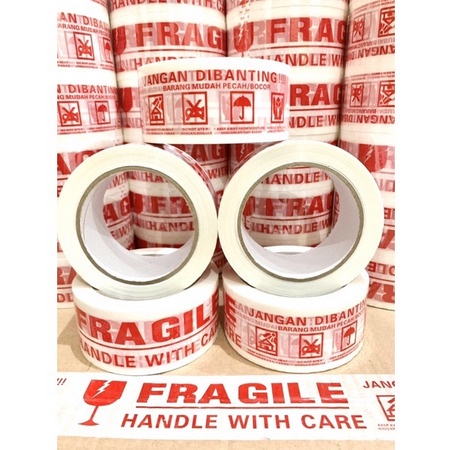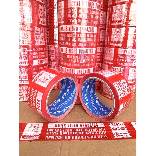 Buku & Alat Tulis > Perlengkapan Sekolah & Kantor > Tali & Selotip > ( Rol 72 Yard ) LAKBAN VIDEO UNBOXING / FRAGILE JANGAN DIBANTING MERAH PUTIH 2 IN / PLAKBAN FRAGILE 48MM HANDLE WITH CARE