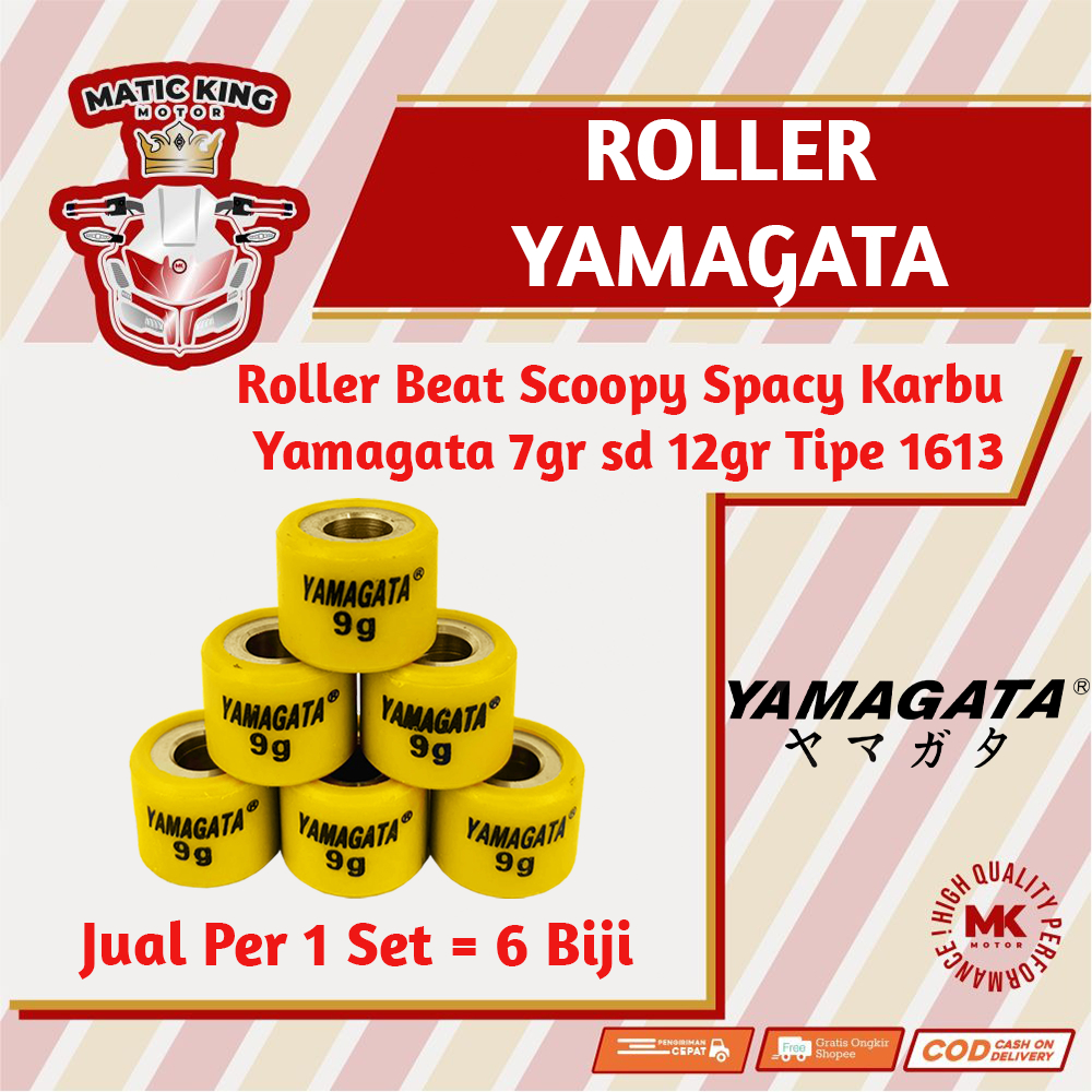 Roller Beat Scoopy Spacy 110 karbu Racing Yamagata 7 gr sd 12 gr Yo, MaticKingers! Welcome to MaticKingMotor! Biar motor awet dan nyaman, harus dirawat dengan baik dan pakai sparepart yang berkualitas, Mas Bro! Pas banget nih toko kami menyediakan macem-macem sparepart berkualitas dan original khusus untuk motor matic kamu biar makin cepat, nyaman, dan nggak gampang rusak! Selamat belanja!