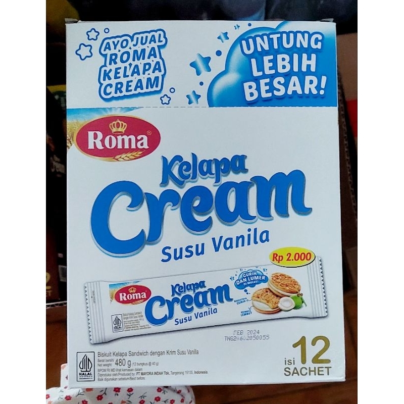 Makanan & Minuman > Makanan Ringan > Biskuit, Kue, & Wafer > Roma Kelapa Cream 42 gr x 12 bungkus