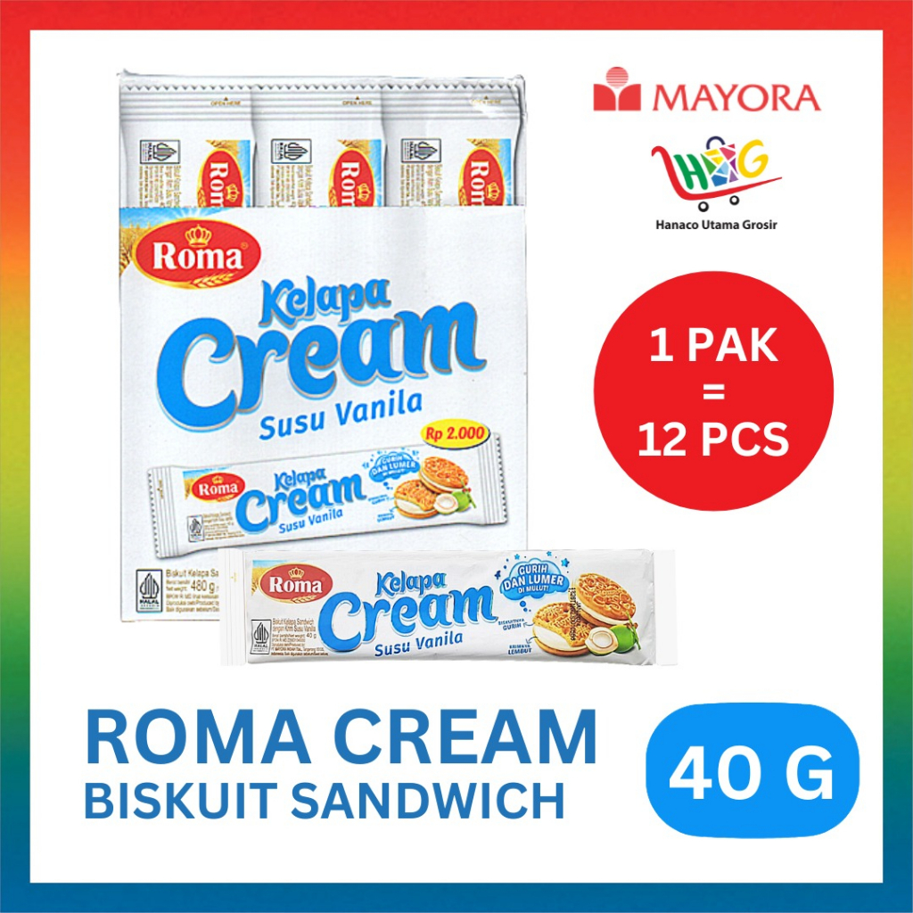- Roma Kelapa cream 40gr merupakan biskuit yang dibuat dari kelapa segar pilihan. Biskuit ini dilengkapi dengan sumber vitamin dan kalsium yang dapat menutrisi tubuh Anda. Nikmati biskuit bersama teh di sore hari dapat mencerahkan hari Anda. - Roma Kelapa cream cokelat 40gr merupakan biskuit yang dibuat dari kelapa segar pilihan. Biskuit ini dilengkapi dengan sumber vitamin dan kalsium yang dapat menutrisi tubuh Anda. Nikmati biskuit bersama teh di sore hari dapat mencerahkan hari Anda.