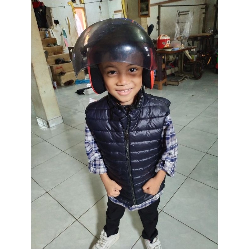 Rompi anak. Mulai dari usia 1 - 2 , 3 - 4 , 5 - 6 thn.. Bahan lembut, nyaman buat anak. Bisa di cauple Ama c ayah..Berikut Sizechat Rompi Anak & tanggung No 15 : LD : 46 cm , PJ : 62 cm. No 10 : LD : 44 cm , PJ : 59 cm. No 8 : LD : 42 cm , PJ : 55 cm. No 6 : LD : 38 cm , PJ : 52 cm. No 4 : LD : 34 cm , PJ : 47 cm. No 2 : LD : 29 cm , PJ : 40 cm.
