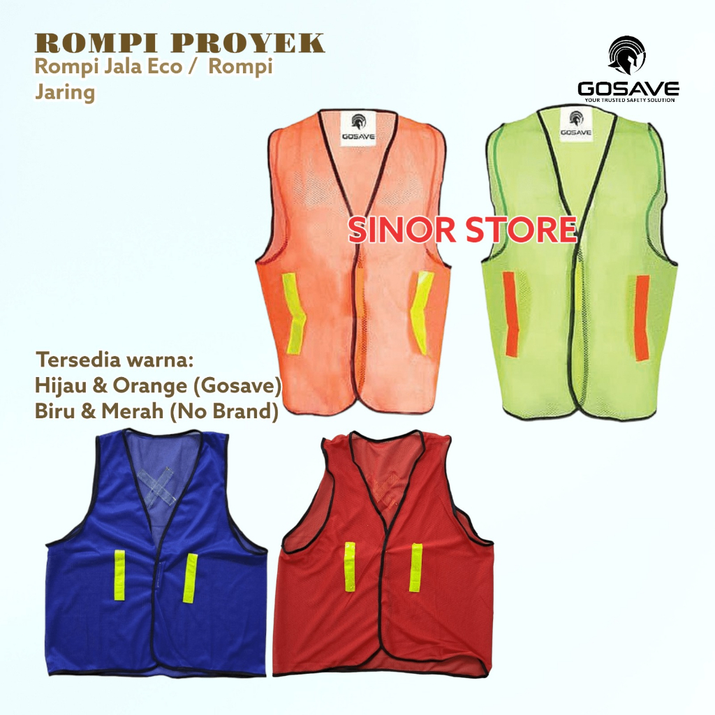 Color / Warna : Hijau / Orange/ Biru / Merah ROMPI JARING BIRU BUKAN MERK GOSAVE. NO BRAND YANG MERK GOSAVE HANYA ORANGE DAN HIJAU AJA. FOTO ROMPI JARING BIRU NYA ADA DI LAPAK, DI SLIDE KE 5-7. SUDAH ADA PILIHAN VARIAN NYA , TINGGAL DIPILIH AJA YA.