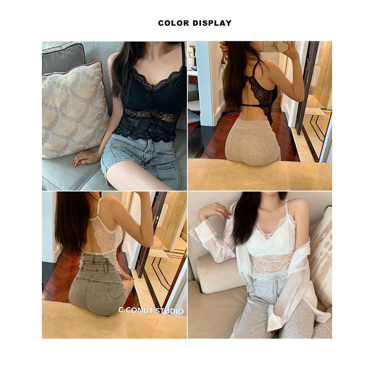 Detail Rompi kamisol berongga belakang kecantikan rompi wanita baru renda renda renda ramping