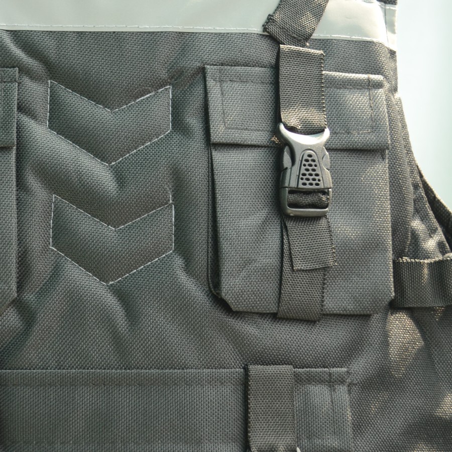 Fitur produk : - Terdapat skotlet di depan dan belakang yang berfungsi untuk memantukan cahaya pada malam hari - Terdapat 3 saku (2 pada bagian dada dan 1 di bagian perut) - Terdapat gesper pada sisi sisinya untuk menyesuaikan ukuran badan pengguna.