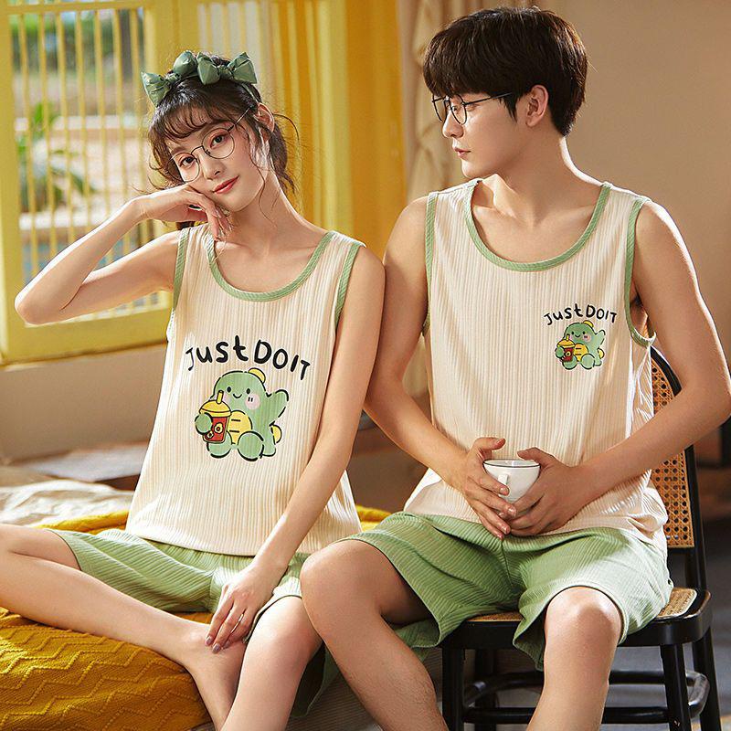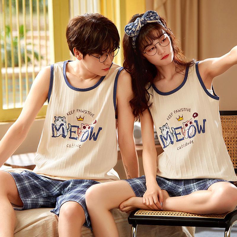 Fashion Bayi & Anak > Pakaian Anak Perempuan > Baju Tidur > Rompi piyama pasangan setelan pria dan wanita setelan lucu setelan katun bagian tipis pria pakaian r