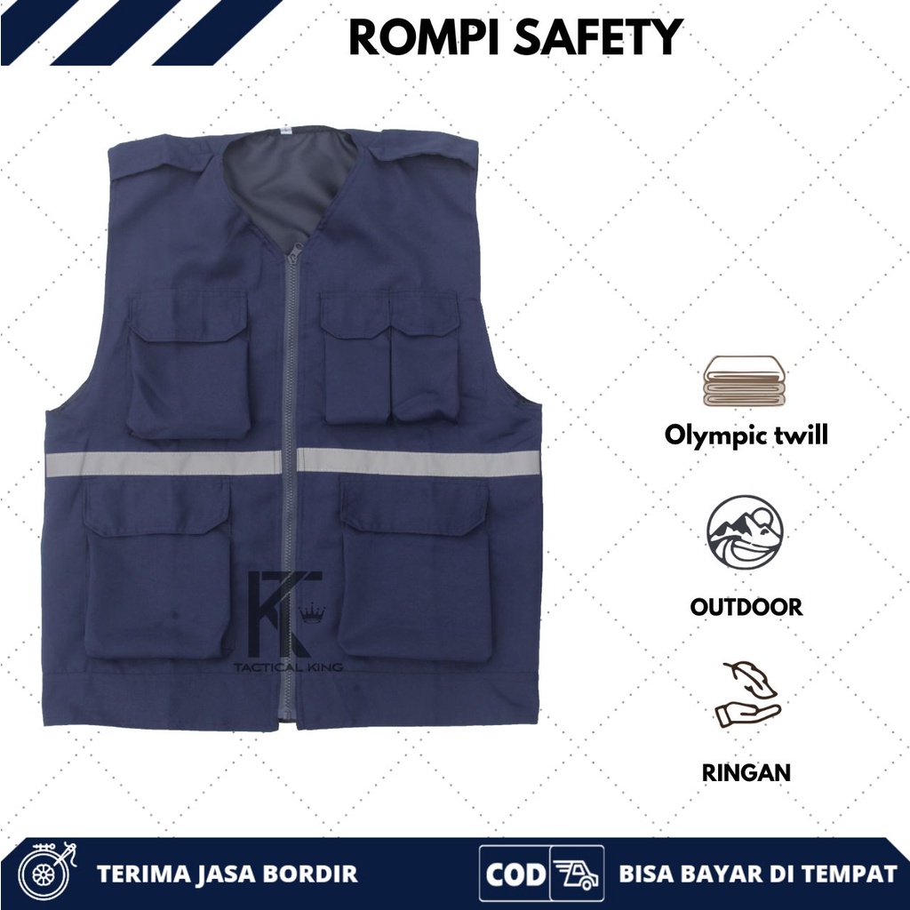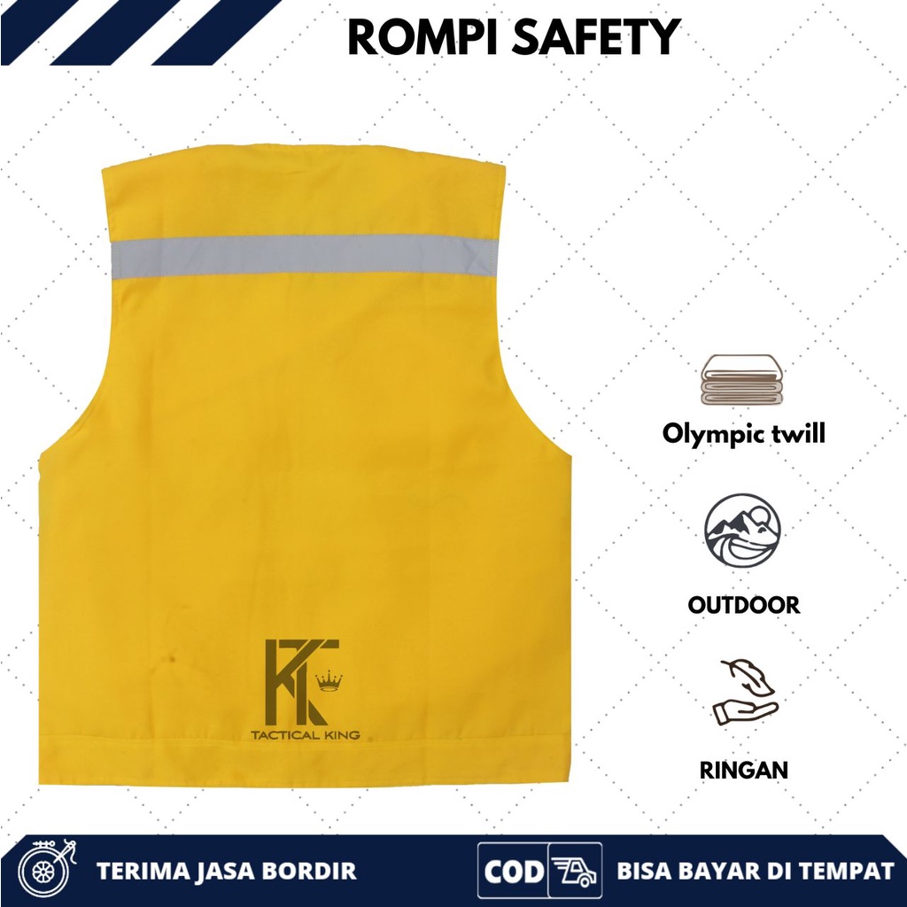 Rompi Safety K3 Vest Pria Kerja Proyek Bahan twill free logo safety dan bendera