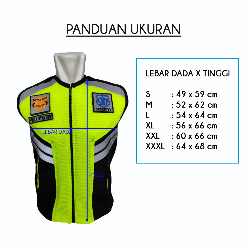 Detail Rompi SECURITY / SATPAM Bahan Double Mesh Tebal Logo Lengkap dan Free Nama