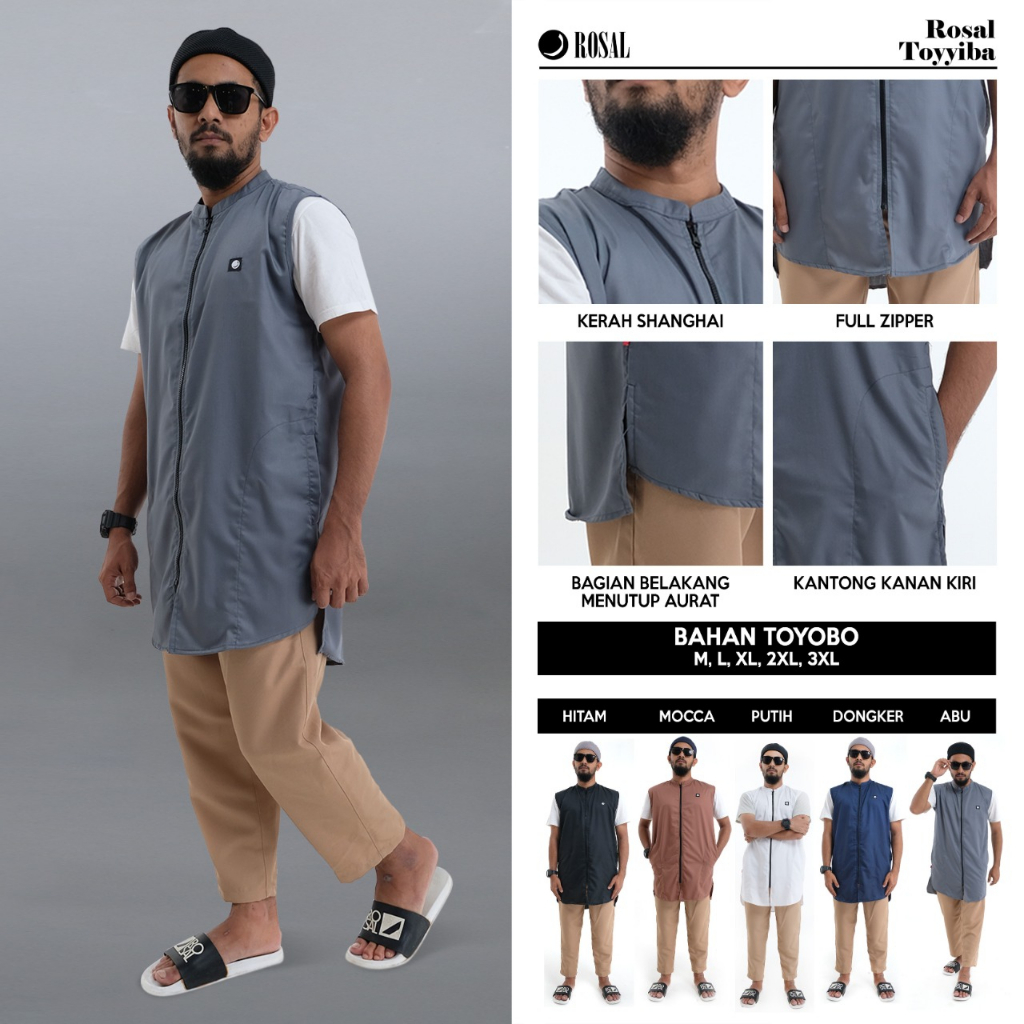 Varian Rompi Shalat terbaru dari Rosal dengan desain semi formil. Kami menamakannya dengan Rosal Toyyiba. Toyyiba berarti kebaikan, namun di sini kami menggunakan istilah toyyiba merujuk kepada penggunaan material Toyobo untuk produk ini.