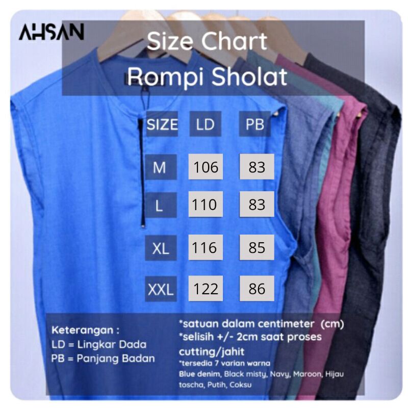 Dengan desain yang simple serta bahan katun supernova yang berkualitas membuat rompi sholat kami nyaman saat digunakan.