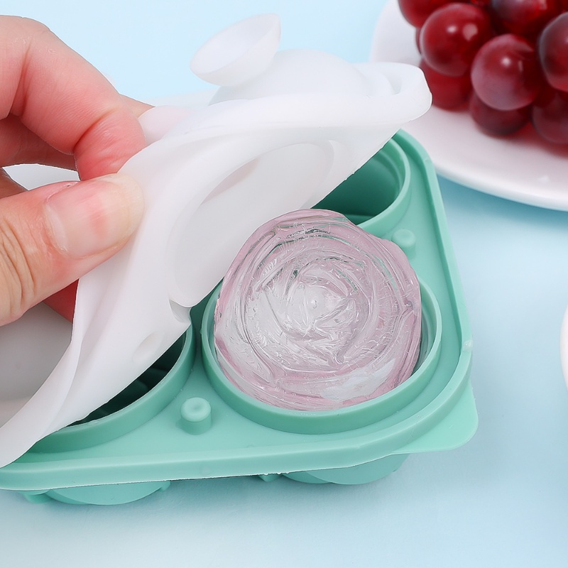 Perlengkapan Rumah > Peralatan Dapur > Peralatan Teh, Kopi, & Bartending > Rongga Besar4Cetakan Silikon Food Grade Untuk Es Batu Dengan Tutup Bentuk Bunga Mawar Dapat Digunakan Kembali Ice Ball Tray Aksesoris Dapur Ice Cream Maker Tools Fruit Yoghurt Whisky Ice Mold