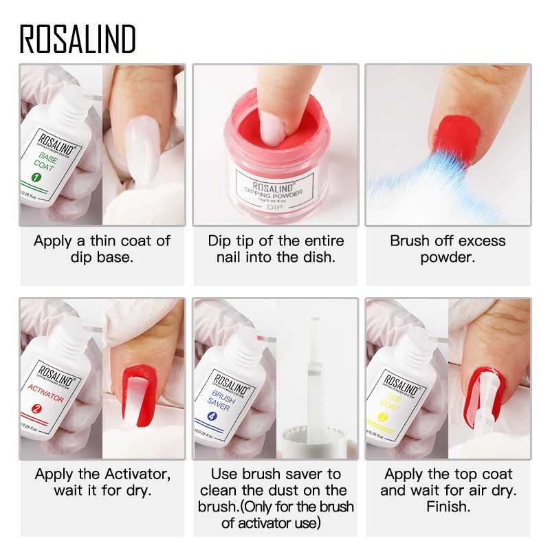 Rosalind Dipping powder tidak memerlukan lampu UV LED untuk mengeringkan. Petunjuk pemakaian:
