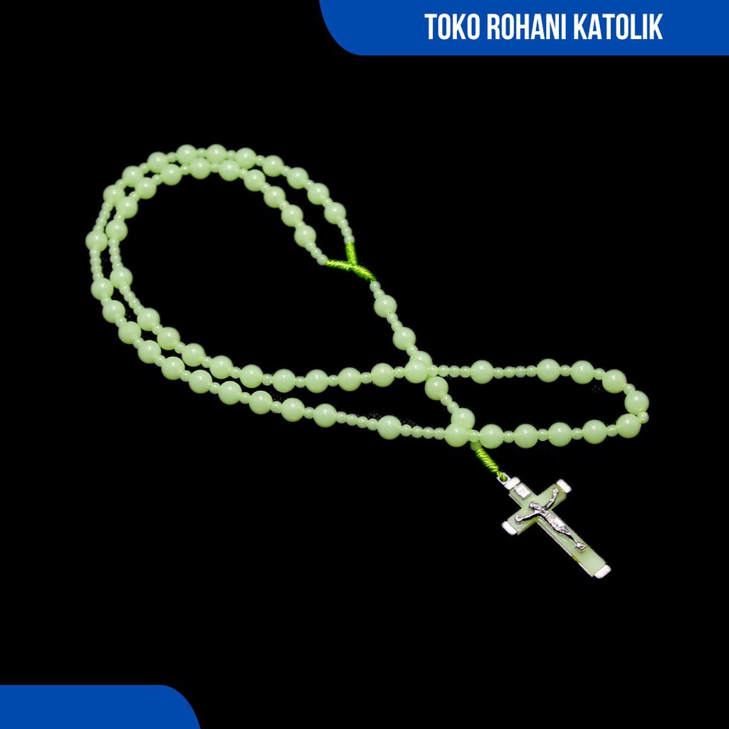 Detail ROSARIO KALUNG FOSFOR 8 MM DAPAT BERCAHAYA DI GELAP/ROSARIO KATOLIK/KALUNG SALIB/KALUNG ROHANI