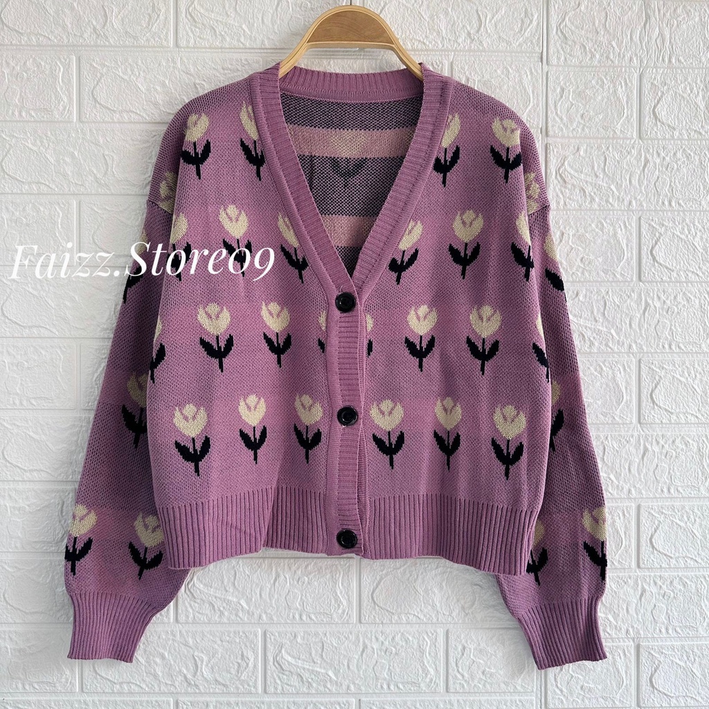 Detail ROSE CARDIGAN RAJUT MOTIF FULL BUNGA ATASAN WANITA LENGAN PANJANG
