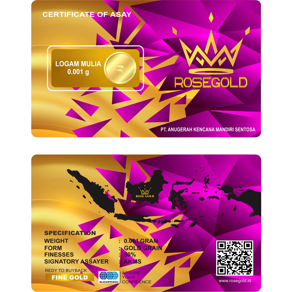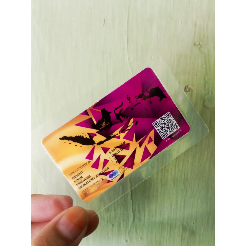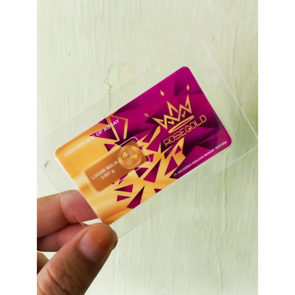 Aksesoris Fashion > Logam Mulia > Platinum & Emas > ROSE GOLD Reguler Series 0.001 Gram Kemasan Laminating TERMURAH Emas Mini Emas Batangan Logam Mulia Murni 24 Karat Bersertifikat Resmi Asli Original Tabungan Emas Souvenir Keren Mewah