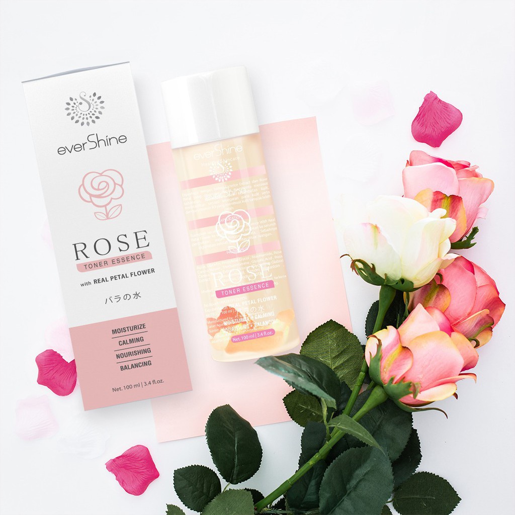 Calming , Brighthening and smoothing , Menormalkan pH kulit dan dapat membantu mengurangi peradangan karena mawar terbukti memiliki kandungan antiseptic dan anti bakteri yang kuat. sifat nya yang seperti astringent menjadikan Rose Toner essence ini mampu menyerap minyak berlebih pada wajah, menyegarkan, sekaligus mengecilkan pori pori wajah dan kandungan Vitamin C alami nya befungsi sebagai anti oksidant sehingga kulit semakin cerah,sehat dan elastis.
