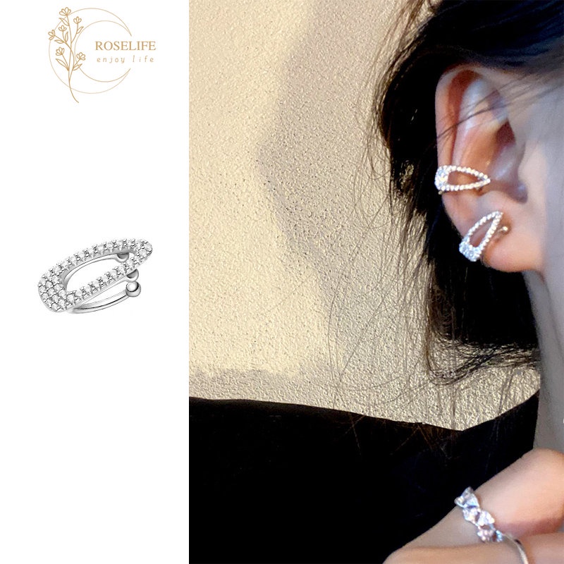 Detail Roselife 1 Pc Halus s925 Perak Bersinar Kristal Pin Kecil Klip Anting-Anting Untuk Wanita Perempuan Korea Non Piercing Zirkon Manset Anting-Anting Perhiasan Aksesoris
