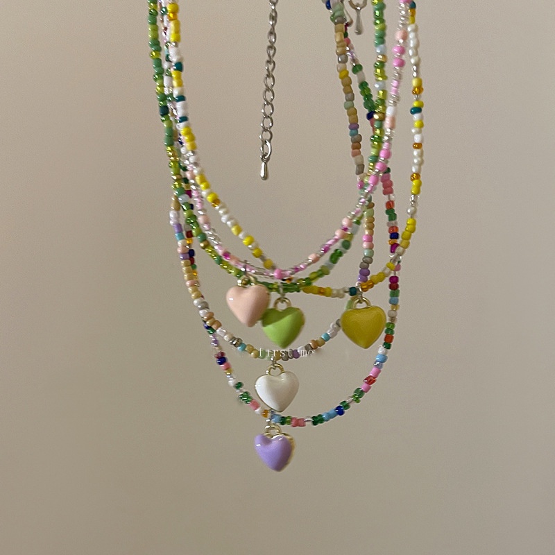 Detail Roselife Bohemia Permen Warna-Warni Manik-Manik 3D Cinta Hati Liontin Choker Untuk Wanita Gadis Korea Rainbow Manik-Manik Tulang Selangka Rantai Kalung Perhiasan Hadiah