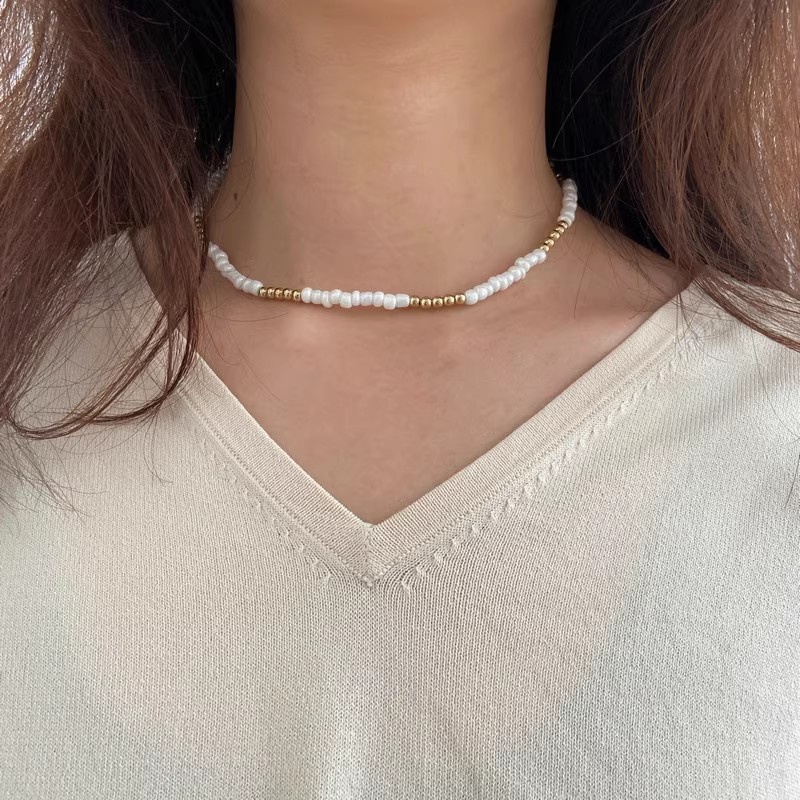 Detail Roselife Bohemian Handmade Irregular Pink Beads Choker Pendek Kalung Untuk Wanita Perempuan Boho Musim Panas Putih Hijau Manik-Manik Kalung Fashion Perhiasan