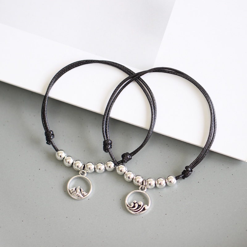 Detail Roselife Gelang Tangan / Kaki Tali Aksen Batu Opal Warna Merah / Hitam Untuk Pasangan / Pria / Wanita