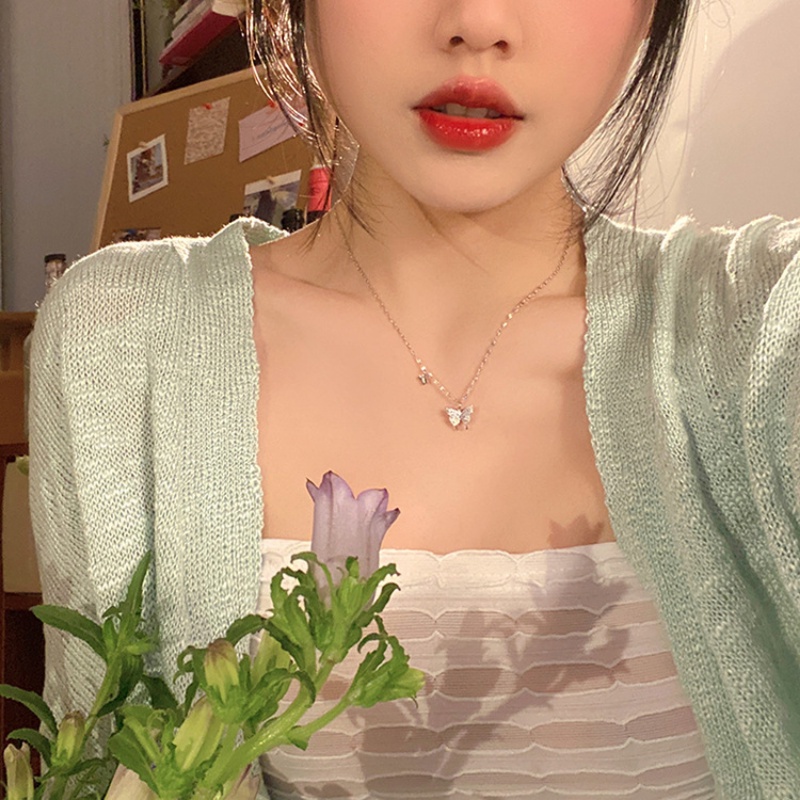 Detail Roselife Kalung Rantai Silver Liontin Kupu-Kupu Ganda Hias Zircon Gaya Korea Untuk Wanita