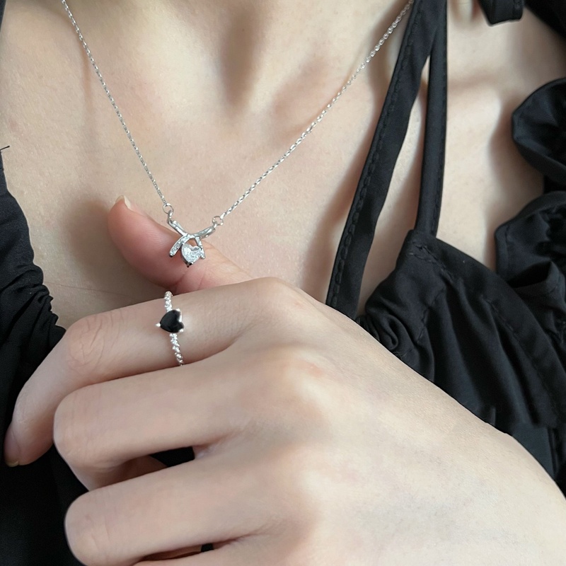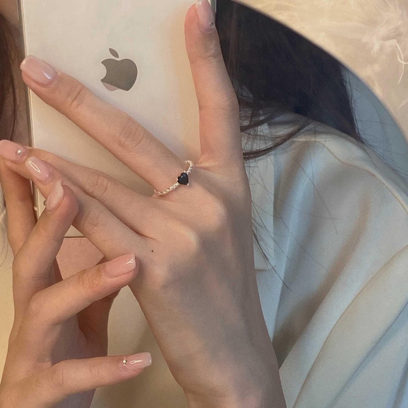 Roselife Keren Glittery Hitam Zirkon Jantung Pesona Cincin Untuk Wanita Gadis Korea Perak Memutar Terbuka Cincin Fashion Jari Perhiasan