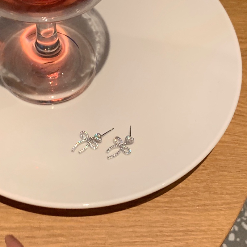 Detail Roselife Korea Perak Bersinar Kristal Busur Menjuntai Anting-Anting Untuk Wanita Gadis Elegan Berongga Ikatan Simpul Stud Anting-Anting Pertunangan Pesta Perhiasan 1pasang