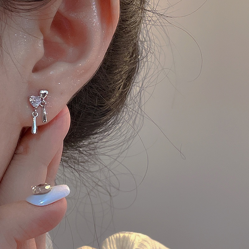 Detail Roselife Korea s925 Perak Zirkon Mengkilap Terkait Jantung Stud Anting Untuk Wanita Perempuan Elegan Cinta Ganda Anting-Anting Perhiasan Aksesoris