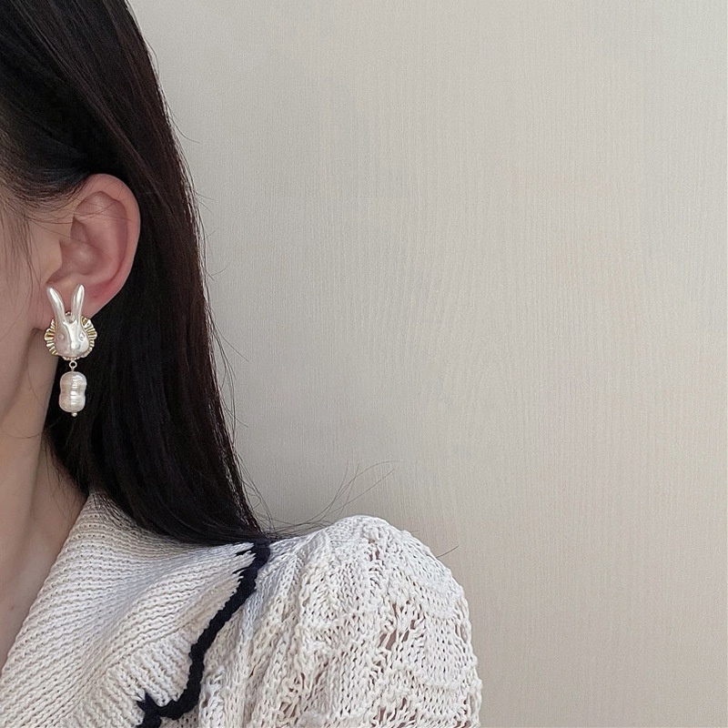 Detail Roselife Mewah Berlebihan Mutiara Kelinci Drop Anting-Anting Untuk Wanita Gadis Korea Kelinci Statement Earring Fashion Perhiasan Telinga Untuk Pesta Makan Malam
