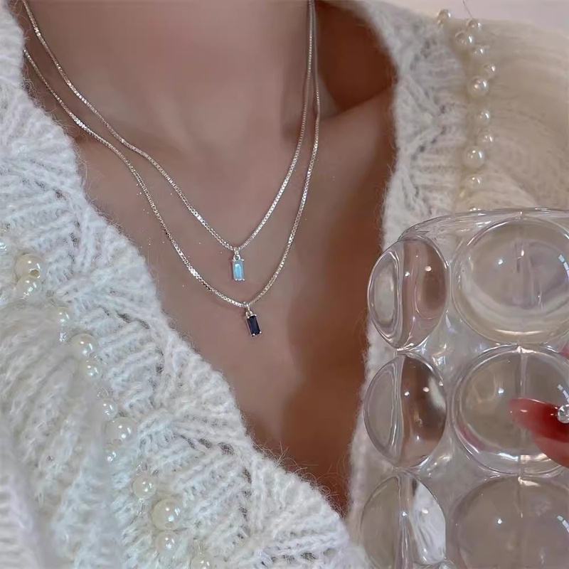 Detail Roselife Minimalis S925 Perak Mengkilap Laut Biru Mungil Kubus Zirkon Liontin Kalung Untuk Wanita Perempuan Vintage Klasik Kecil Berlian Imitasi Pesona Kalung Perhiasan