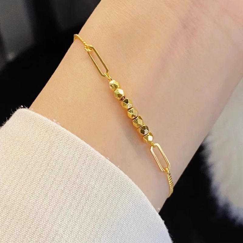 Aksesoris Fashion > Gelang Tangan & Bangle > Roselife Uang Tua Mengkilap Emas 14 K Manik-Manik Kecil Pesona Beruntung Gelang Wanita Gadis Klasik Elegan Pergelangan Tangan Rantai Gelang Perhiasan Aksesoris