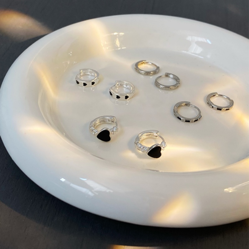 Roselife Unisex 4 Pcs Minimalis S925 Perak Hitam Jantung Hoop Anting Set Untuk Wanita Gadis Pria Hypoallergenic Lingkaran Bulat Anting-Anting Fashion Pakaian Sehari-Hari Telinga Perhiasan