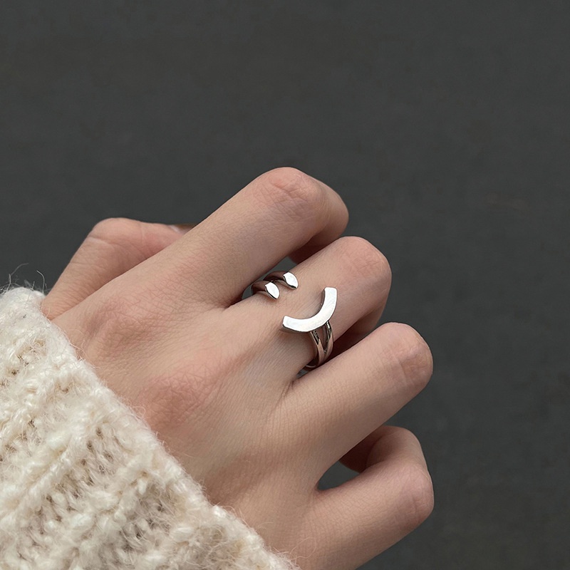 Detail Roselife Unisex Korea Baja Titanium Wajah Senyum Cincin Untuk Wanita Pria Keren Fashion Jari Manset Rings Teman Pecinta Perhiasan Hadiah
