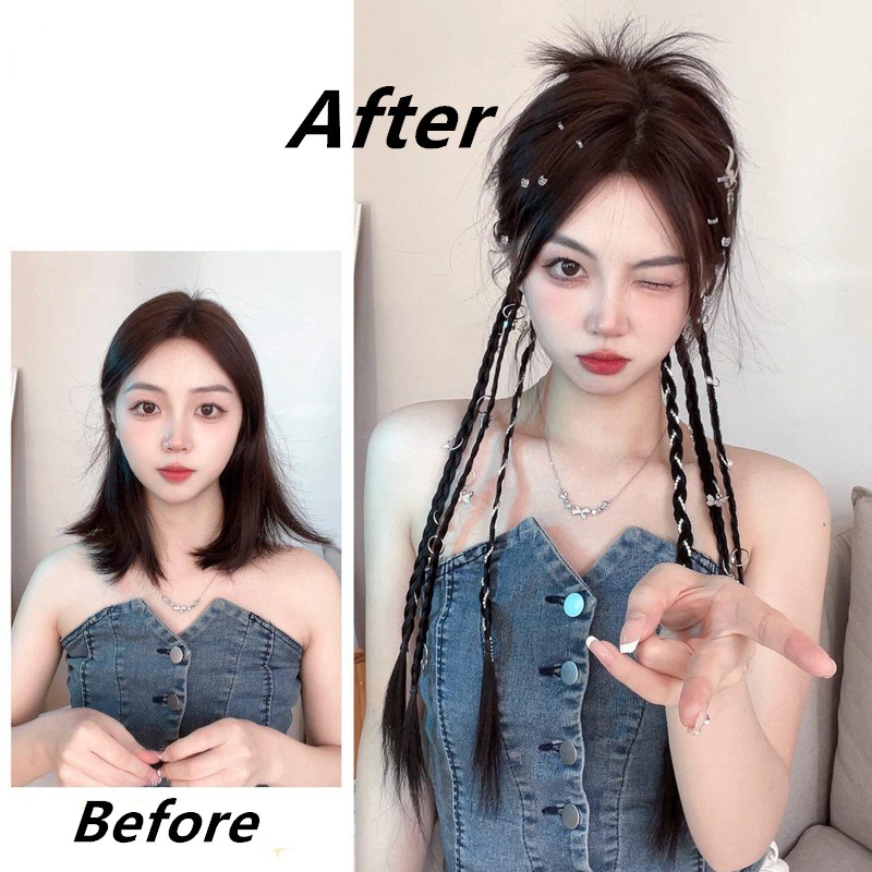 Spesifikasi: Bahan: paduan, serat sintetis Warna: seperti gambar Panjang: 50CM Paket: 2 pcs kepang atau 1 pc kepang sesuai pilihan